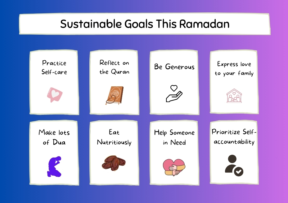 Where Ramadan brings God’s solace, the diligent observance of fasts and prayers can also seem unnerving as you find yourself engulfed in the worries of life. Here, setting sustainable, manageable, and realistic goals can really help you plan your Ramadan and feel its Rahma manifold.